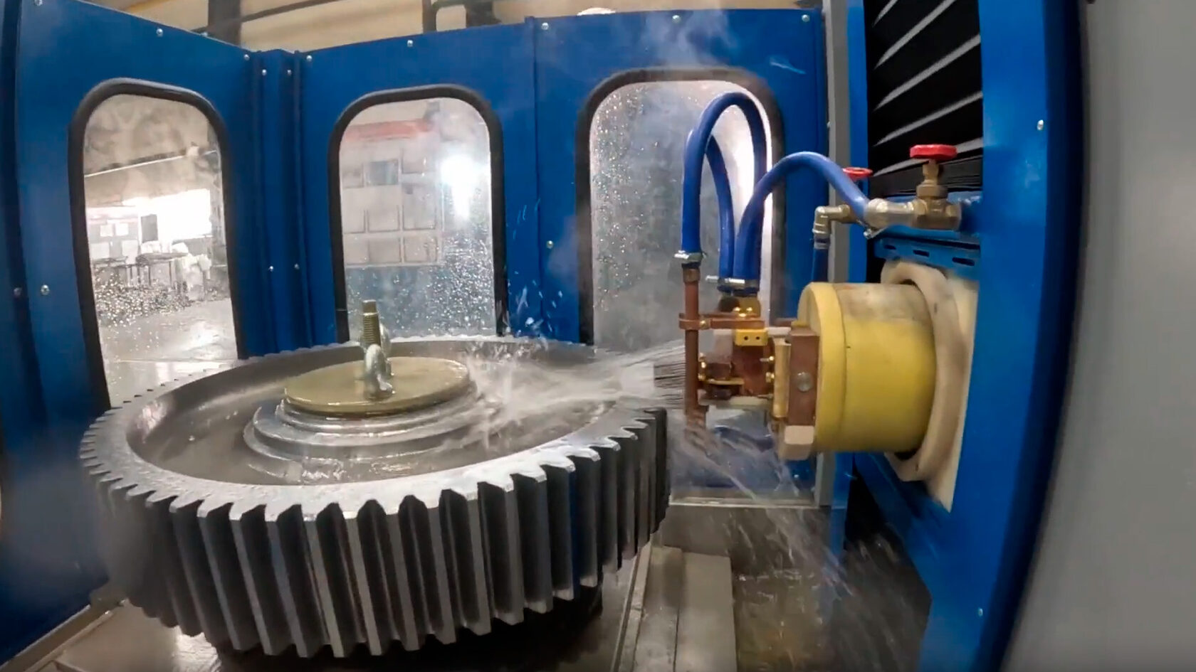 - Конструкция индуктора и спрейера. Формирует распределение поля и тепла, а также синхронизацию охлаждения «вдогон» индуктору, чтобы зафиксировать требуемую глубину и профиль твёрдости. Количество индукторов и спрейеров подбирают под номенклатуру детали.