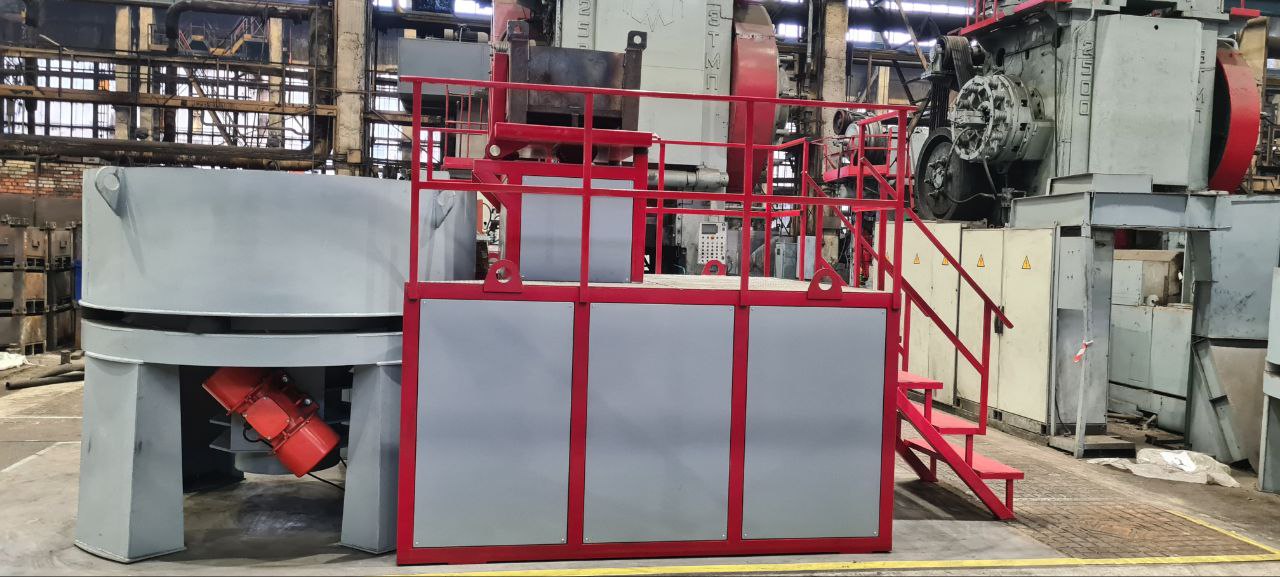 вибрационный бункер до 1000 кг, загрузка через гидравлический опрокидыватель