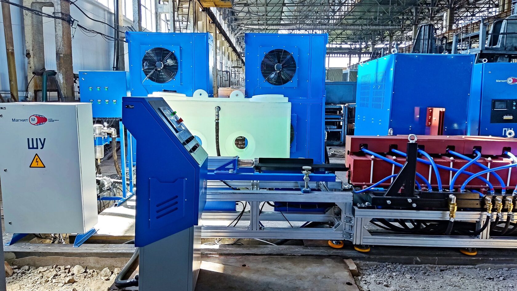 Кузнечный нагреватель УИН 707−500/РТ предназначен для равномерного индукционного нагрева заготовок перед горячей штамповкой. Выполнена в моноблочном исполнении с полной интеграцией всех ключевых узлов, включая систему охлаждения. Оборудование поставляется в готовом к пуску виде — требуется лишь подключение электричества и оборотной технической воды.